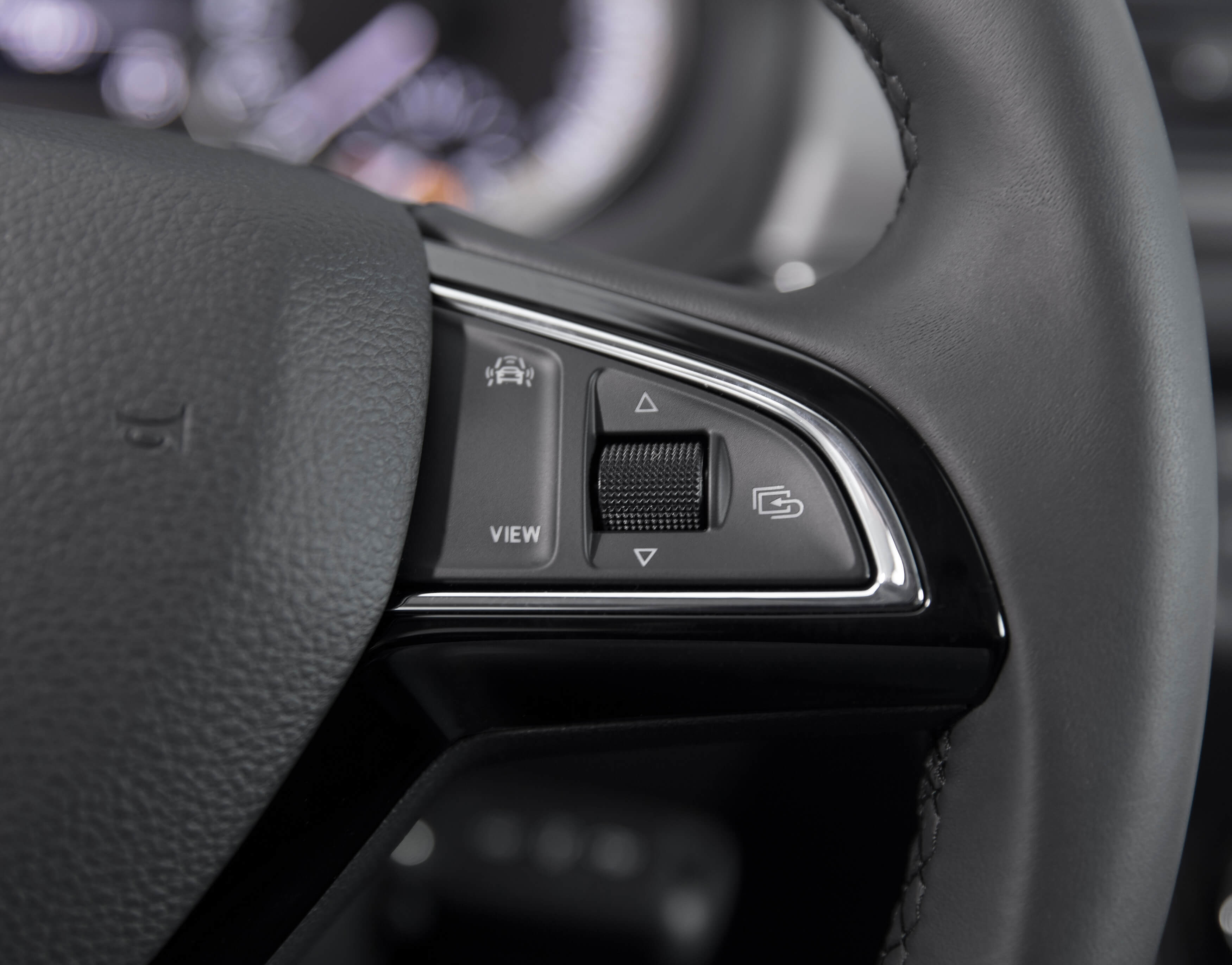 Многофункциональное 3-спицевое кожаное рулевое колесо с управлением радио и телефоном + хром-пакет