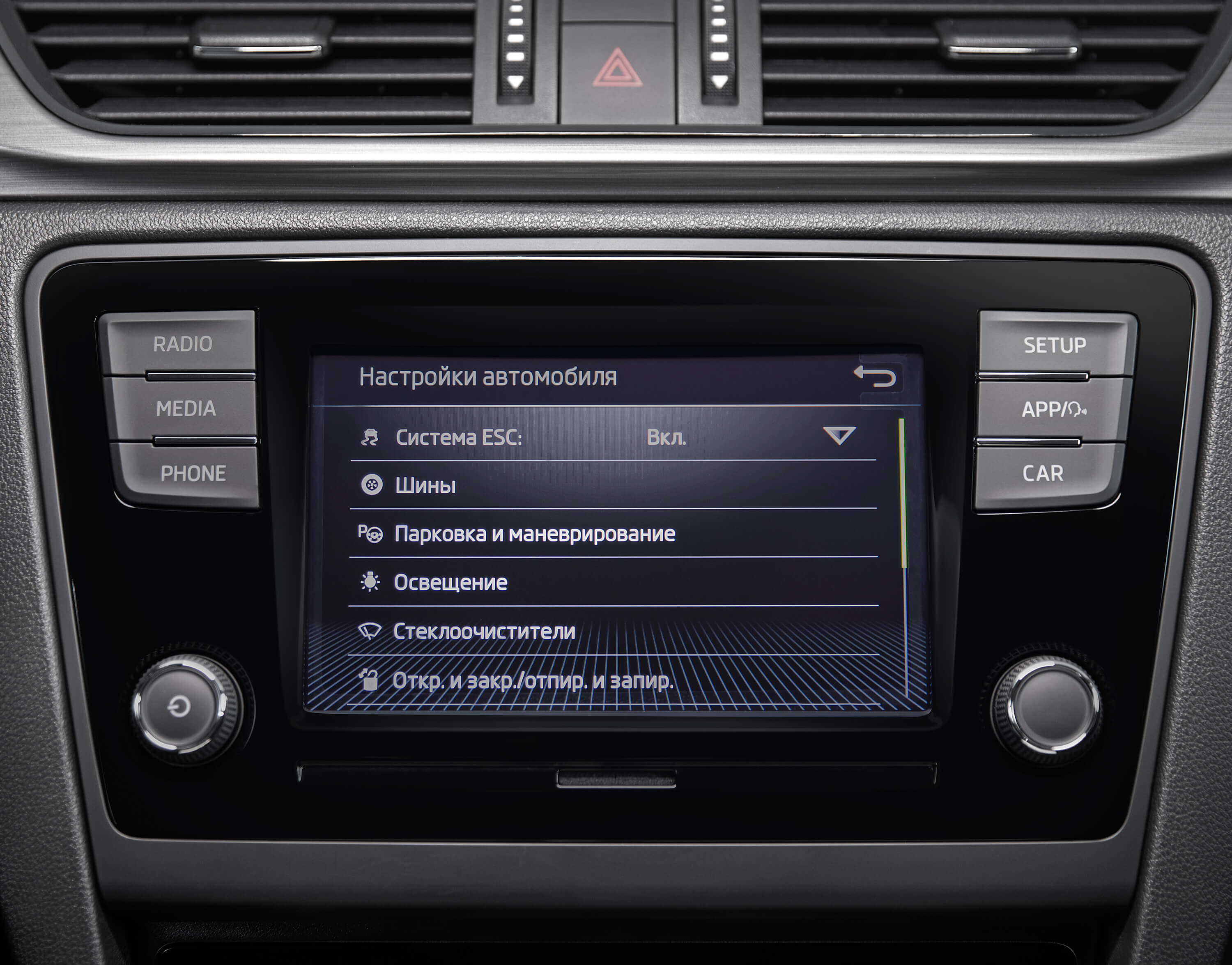 Тюнер AM/FM хорошо принимает радиосигнал даже вдалеке от больших городов, слот для SD-карт и USB-разъём позволяют подключать различные цифровые носители информации. Цветной сенсорный дисплей диагональю 6,5 дюймов облегчает настройку вспомогательных систем автомобиля, делает более простым маневрирование в ограниченном пространстве (на него выводятся данные от парктроников и камеры заднего вида), позволяет управлять мобильным телефоном, подключённым по Bluetooth. Чистое мощное звучание системы обеспечивают шесть динамиков (ŠKODA Surround).